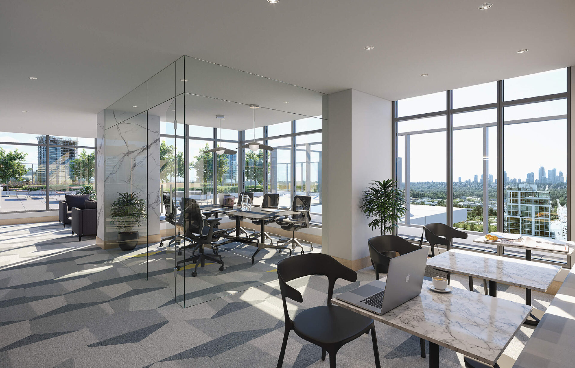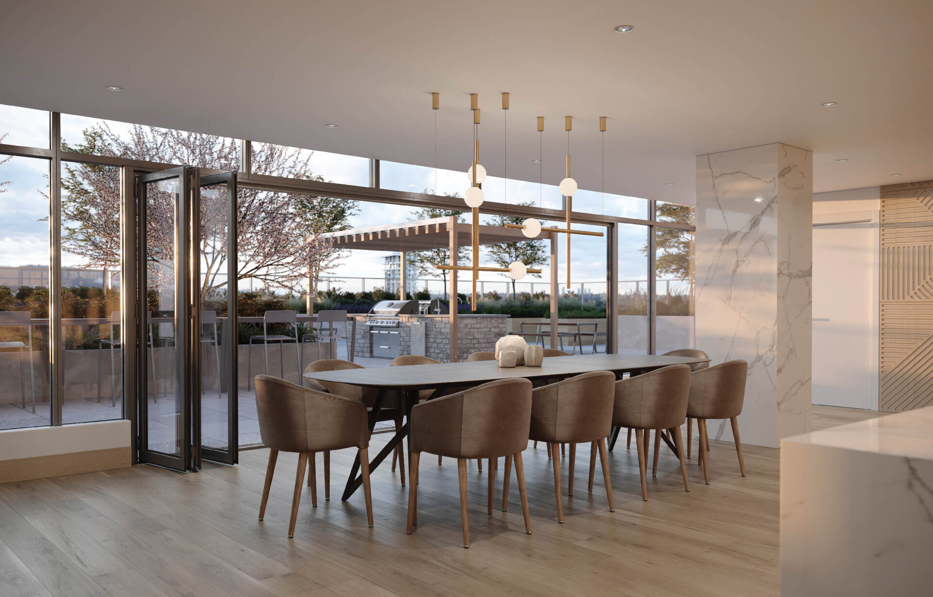Residents have exclusive access to over 16,000 sq. ft. of combined spectacular state-of-the-art spaces spanning two full floors, offering seamless indoor-outdoor accessibility. Private dining with a chef’s kitchen, indoor-outdoor lounge areas, a club-calibre fitness facility and a dedicated business centre to take active, urban and social living to another level.